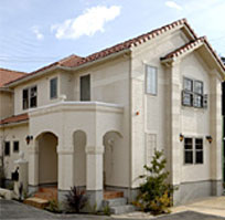 その他に、重厚感ある南欧風玄関ドアや、ヨーロッパに古くから伝わるアイアンワークを取り入れ手作り感を出した当社オリジナルのロートアイアンの窓飾り、玄関タイルや石、玄関ポスト、鋳物風の外部照明、日よけ用オーニング(バイザー)など、ディテールにこだわったマテリアルを採用しています。
